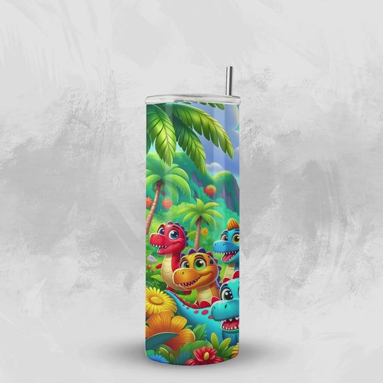 Say hello to your new favorite tumbler! 💚 This vibrant 20oz stainless steel tumbler is bursting with dino-mite cuteness and tropical vibes — perfect for kids and dino lovers of all ages!
