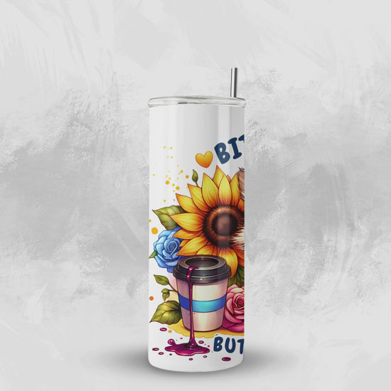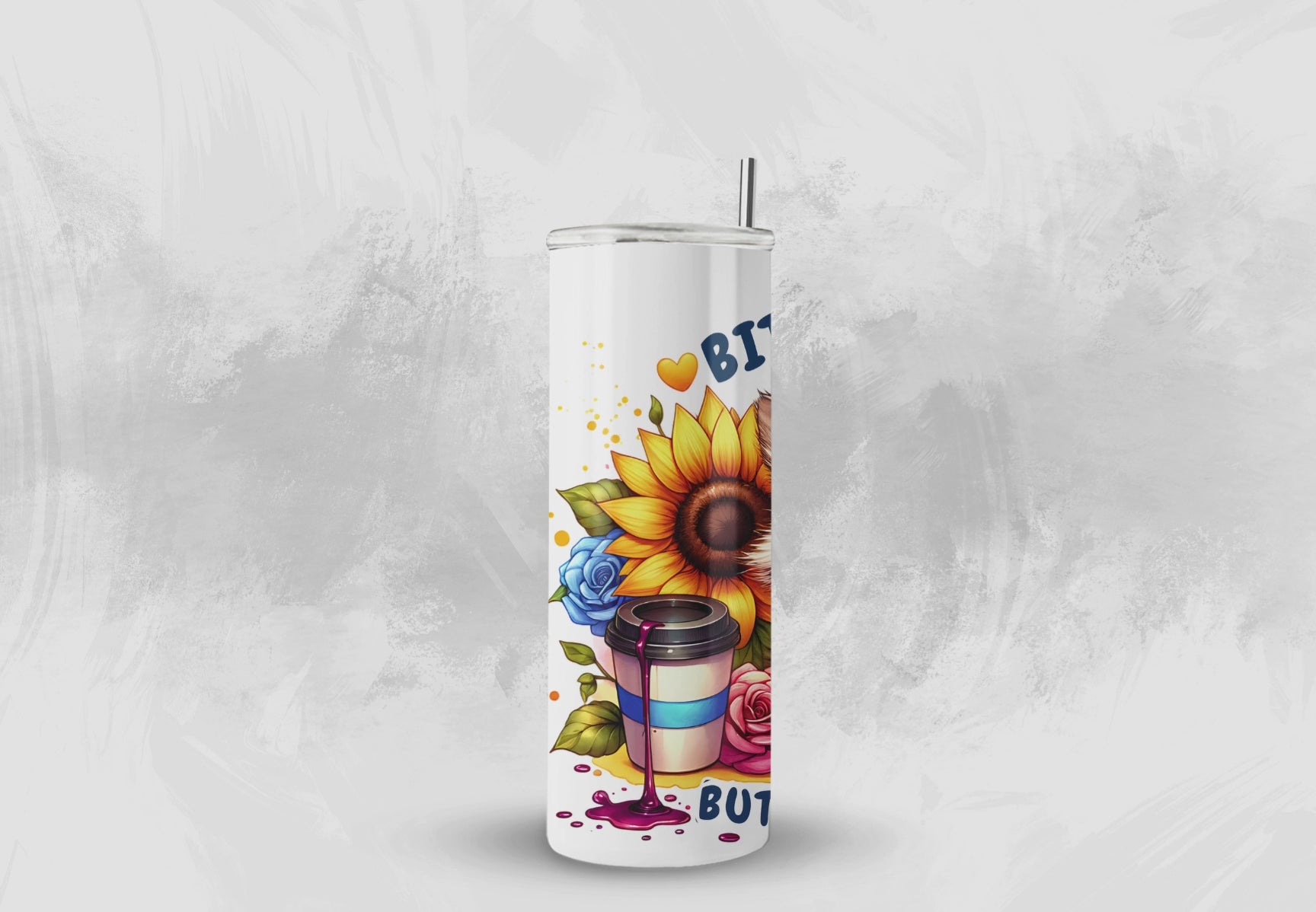 Life can be wild—but at least you can sip in style! 🦝💐 This 20oz tumbler is perfect for those of us juggling coffee, chaos, and a good attitude. Featuring an adorable raccoon with heart-shaped shades, bright sunflowers, and colorful vibes all around—this cup totally gets it. ☕💕