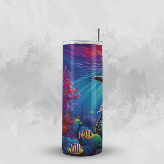 This 20oz stainless steel tumbler is more than just a cup—it’s an underwater adventure in your hand! Featuring a vibrant sea turtle gliding through colorful coral reefs, it’s perfect for ocean lovers, beachgoers, and anyone who adores sea life. 🌞🐠
